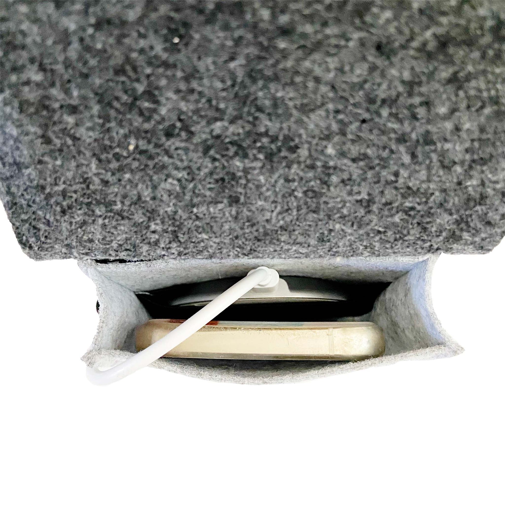 Unlike electronic faraday bags that block signals, this phone sleeping bag works through mindful design—keeping your phone accessible for emergencies but out of reach for mindless browsing. The interior charging strap lets your phone charge overnight while you sleep undisturbed. Made from sustainable felt crafted from recycled plastic bottles, it's an eco-friendly way to improve your sleep habits.